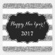 Happy New Year 2017 Aufkleber in festlich silber Glitzer Effekt Streifen Muster mit schwarz-weiß Details.