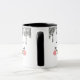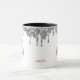 Diese Tasse hat auf zwei Seiten ein glückliches Schneemanagement. Die Spitze ist von funkelnd Tropfen aus silberfarbenem Glitzer umgeben. Ihr Name oder ein anderer Text befindet sich zwischen dem Schneemann Gesichter. Niedlich für Weihnachten und den ganzen Winter.