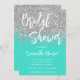 Silver Glitzer Türkis QR Code Brautparty Einladung