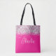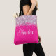 Entwerfen Sie Ihre eigene personalisierte oder mit Monogramm Tasche in Form eines modernen kalligraphischen Schriftartes. Dieses lockige Skript sieht entweder mit ihrem Vornamen oder dem Initialnamen großartig aus. Es gibt andere Schriftart-Stile zur Auswahl. Der silberne Glitzer ist ein digitales Kunstdesign, das wie ein Foto gedruckt wird. Passen Sie den hellrosa Hintergrund an, damit er zu ihrer Lieblingsfarbe passt.