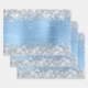 Papiertücher im Glam-Stil für ihre Babydusche oder ihren Geburtstag. Die Kanten sind mit silbergrauem Glitzer und Glitzern aus Imitat versehen. Der Hintergrund ist eine hellbläuliche, ombre gearbeitete digitale Kunstgeschichte, die wie ein Foto auf der Geschenkverpackung gedruckt wird.