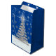 Silver Glitzer Weihnachtsbaum auf blau Mittlere Geschenktüte