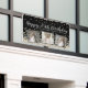 Elegant custom birthday banner design featuring gold and silver confetti over a black background, modern script typography with the words "Happy 25th Birthday" with your name and date (in silver) and three of your favorite photos framed in metallic silver foil.