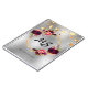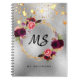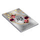 Ein Imitat silber metallisch aussehender Hintergrund mit tropfenden Imitaten goldenen Sternen. Die Einrichtung besteht aus einem geometrischen Rahmen in den Imitaten mit goldenem Rahmen und bordeauxroten, rosa und goldfarbenen Blume mit Blumenmotiven. Personalisieren und fügen Sie Ihre Monogrammbuchstaben, -initialen. Schwarze Buchstaben. Ideal für Schule, Zuhause Office, Noten, Journalisten und Aufgabenlisten.