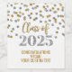 Graduation Party individuelle Weinflaschen Etiketten Klasse von 2025 mit Silber und Gold Glitzer Muster confetti.