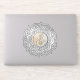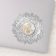 A symmetrical mandala design featuring intricate a yin yang floral pattern in gold and silver.