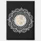 A symmetrical mandala design featuring intricate a yin yang floral pattern in gold and silver.