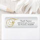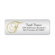 Eleganter Umschlag Rücksendeadressen-Aufkleber in Imitate silberfarben mit goldenen Design Brief erste monogramm 'F'. Template-Etiketten; fügen Sie Ihren eigenen Text hinzu. Kontaktieren Sie Designer für weitere Variationen für Buchstaben und/oder Hintergrundfarbe / Muster.