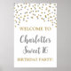 Maßgeschneiderter Text süß 16 Geburtstagsfeier Poster mit Silber und Gold Konfetti.