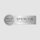 Namensschilder, die mit Ihrem eigenen Firmenlogo versehen sind. Auf einem silbergrauen Farbverlauf mit simuliertem (im Kunstwerk simuliertem), gebürstetem Metallook kann der Name in einem eleganten Serif-Schriftart und Titel/Firmenname unten individuell eingestellt werden. Mit dem Design-Tool können Sie Schriftart und Schriftart ändern.