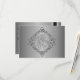 Eine silberne Hochzeitsankündigung im RSVP-Format mit einer gravisierten Dekoration von Hochzeitsglocken und Bändern in einem verzierten Rahmen, mit einem schwarzen Samt-Look Band in weißer Spitze. Diese eleganten Hochzeitsankündigungen sind Teil eines korrespondierenden Hochzeitsbriefpackers, das auch passende Silbereinladungen, Hochzeitsbriefmarken, Adressetiketten und passende silberne Umschlag Aufkleber umfasst. Wenn Sie einen Artikel wünschen, der hier nicht bereits angeboten wird, zögern Sie bitte nicht, mich für weitere maßgeschneiderte Hochzeitsarbeit zu kontaktieren. Sie können mich erreichen, indem Sie auf den Link Kontakt oben klicken.