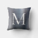 Modernes, silbergraues Pinselmetall, Girly Script Monogram Kissen