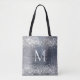 Klassischer Silver Gray Glitzer Sparkle Bürstenmetall, Girly Script Monogram Tote Bag