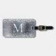 Glam Silver Gray Glitzer Sparkle Brushed Metal Girly Script Monogram Gepäcktag