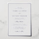 Einladung der Silbergrauen Hochzeitsfolie. Einfach und stilvoll präsentiert sich diese formelle Hochzeitseinladung mit einem eleganten Rahmen und einer eleganten Kalligraphie, die in echter Silberfolie gepresst wird.