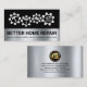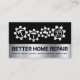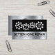 Ein silbernes Cover aus Imitat und Schwarz zeigt vier silberne Sprossen, die handwerkliche Icons enthalten; sie stellen einen Teil der Arbeit oder des Service dar, die Sie anbieten können, z.B. der Hammer kann eine Zuhause-Renovierung, die Rollbürste für die Malerei, den Wasserhahn für die Rohre und den Buchstaben-e-Zuhause für elektrische Arbeiten darstellen. Die vier silbernen Keime selbst können mechanische oder Gerätewartung/-reparaturen darstellen. Die silberne Schicht darunter hat Ihren Firmennamen "HANDYMAN SERVICE" und eine Liste von Serviceleistungen, die Sie anbieten können. ; Ändern Sie sie in Anzug Ihrer eigenen Bedürfnisse. Auf der Rückseite, in einem Imitat silberne Abdeckung, befindet sich oben ein goldenes Zuhause-Landschaftslogo, das Sie verwenden können. Danach folgen Ihr Name, Ihre Kontaktdaten und ein Slogan, um Ihre Dienste bekannt zu machen. Eine großartige berufliche Karte für Bauunternehmen und Handwerksbetriebe. #handyman #konstruktionhandyman #homerepairtragan #homerepairhandyman #construction #builder #tragning #remodeling #renovation #handymantools #konstruktiontools #zazzlemade #