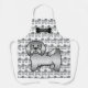 Desteis originelle Cartoon-Illustration einer niedlichen silbergrauen Fellfarbe Bichon Havanais / Havanese Rasse Hund. Das Hundedesign wird als Muster auf dem Hintergrund der Schürze platziert und am unteren Rand vergrößert. Die Oberseite hat eine Silhouette mit schwarzem Hund und einen personalisierbaren Textbereich für einen Namen.