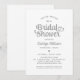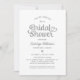 Elegante, maßgeschneiderte Brautduscheinladungen mit modernem Kalligrafieschrift "Brautparty" Typografie-Design mit niedlichem Herzakzent. Personalisieren Sie mit dem Namen der Braut, der zukünftigen Frau, die die Veranstaltung ehrt, und allen wichtigen Veranstaltungsdetails. Sauberes und einfaches Design. Beachten Sie, dass das Farbschema silber-grau und weiß geändert werden kann.