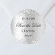 Ein Save the Date Aufkleber für Ihre Hochzeit. Ein Imitat silber aussehender Hintergrund, schwarzer Text. Mit Konfetti dekoriert. Personalisieren und fügen Sie Ihre Namen und Hochzeitsdatum.