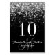 Diese unglaubliche Hochzeitskarte wird Ihre Tischnummer sicher begeistern. Die helle silberne glitzernde Lichtorb verblasst auf einem subtilen schwarzen Hintergrund. Ideal für eine elegante, elegante Hochzeit oder Veranstaltung.