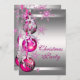 Silver Hot Pink Snowflakes Weihnachts-Party Einladung
