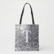 Ein modernes, fett gedrucktes Single-Monogramm in Weiß mit einem schwarzen Schlagschatten. Die Größe, die Farbe und der Stil des Schriftartes sind individuell einstellbar. Der Hintergrund ist ein Imitat silbergrauer Glitzer mit funkelnd Flecken oder Buch. Verschieben oder löschen Sie die kleinen Imitate funkeln grafische Bilder. Silber graues Geschenk für eine Brautjungfrau oder ein anderes Mitglied Ihrer Hochzeitsfeier.