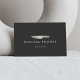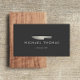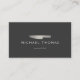 Das Messer eines silbernen Koch zusammen mit Ihrem Namen oder Firmennamen schafft ein auffälliges und berufliches Logo auf diesem modernen Visitenkartendesign. Perfekt für Catering, Koch, Restaurants, Küchenutensilien, etc. © 1201AM CREATIVE