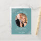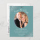 Diese schöne Save the Date Postkarte ist so konzipiert, dass Sie Ihre Freunde und Familie rechtzeitig über Ihre Hochzeit informieren können. Es zeichnet sich durch ein schlichtes und dennoch elegantes Design aus, mit hellgrauem Text auf einem aquamarinen oder türkisfarbenen Hintergrund, und Ihr Foto in einem ovalen Rahmen, umgeben von froh-silbernen Imitaten, Folienrollen und Wirbel. Die Rückseite hat eine niedliche grafische Lektüre "Bleistift uns in" und Platz für eine benutzerdefinierte Note.