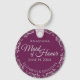 Diese wunderschönen Schlüsselanhänger sind so konzipiert, dass sie als Geschenk oder Gastgeschenk Hochzeit an Ihre Trauzeugin gegeben werden. Das elegante Design zeichnet sich durch einen fein silberfarbenen, grauen Imitat mit hellgrauem Text auf einem lila, magentafarbenen oder berry-farbenen Hintergrund aus. Es gibt Platz für ihren Namen, das Hochzeitsdatum und die Namen des Paares. Ich danke ihr, dass sie Teil Ihres besonderen Tages ist!