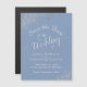 Diese wunderschönen Magnetkarten werden Ihren Freunden und der Familie gelassen, für Ihre kommende Hochzeit Save the Date zu können. Die wunderschöne Einrichtung besteht aus einem dustig blauen oder periwinkelfarbenen Hintergrund, einer hellgrauen Schriftzeichen-Kalligraphie und verzierten silbernen Imitate-Folienkanten und Wirbel in den Ecken. Eine wunderschöne Art, Ihre Freunde und Familie lassen, wissen über Ihre kommende Hochzeit.