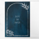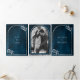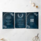 Silver Laurel Wreath Blätter Ocean Blue Wedding Dreifach Gefaltete Einladung