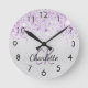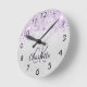 Silver Lavendel Glitzern Monogramm Runde Wanduhr