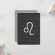 Ein Leo Zodiac-Symbol auf einem schwarzen Kohlefaser-Stil Textur-Hintergrund. Ein modernes urbanes Design für eine großartige Geschenkidee zum Geburtstag.