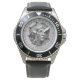 Herrenuhr aus Edelstahl mit schwarzem Lederarmband