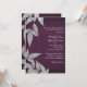 Diese schöne Hochzeitseinladung zeigt ein altes Vintages Papiermuster-Aussehen mit Bildern von silbergrauen Herbstlauben auf einem dunklen lila Hintergrund. Günstig für jede Braut, die nach einem klassischen Vintagen Look für ihre Hochzeit im Herbst sucht