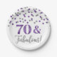 70 und fabelhafte Geburtstagsparty Teller mit silber und lila Glitzer Muster Konfetti.