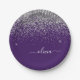 Silver Lila Glitzer Girl Monogram Name Pappteller