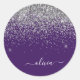 Silver Lila Glitzer Girl Monogram Name Runder Aufkleber