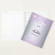 Ein Imitat silber metallisch aussehender Hintergrund mit lila Imitaten Glitzer Staub. Personalisieren und fügen Sie Ihren Vornamen, Monogramm Initialen, vollen Namen und ein Jahr.