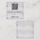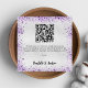 Ein Imitat silber aussehender Hintergrund, mit lila Imitaten Glitzer Glitzern. QR-Code: Fügen Sie Ihren Link/URL zu Ihrer Hochzeitswebsite für UAWG. Personalisieren Sie Ihre Namen und fügen Sie sie hinzu.