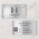 Ein elegantes Imitat silber aussehender Hintergrund mit Konfetti dekoriert. Personalisieren Sie Ihr Firmenlogo und Text auf der Vorderseite und fügen Sie es hinzu. Zurück: Vorlagen für Ihren Namen, Titel, Telefonnummer, E-Mail und Website-Adresse, QR-Code. Ideal für Unternehmerinnen, Berater, Geschäftsinhaber.