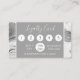 Silver Marble Girly Minimalistisch Loyalty Briefmarke Kaufen 5 Erhalten Sie einen prozentualen Rabatt Karte mit weißer handgeschriebener Typografie für das Monogramm auf der Kartenrückseite mit Geschäftsdetails. Die Silver Marble Girly % Off Loyalty oder Rewards Business Card kann für jeden Beruf angepasst werden und enthält 5 Stempel und 5 bearbeitbaren Rabatt auf der Vorderseite der Loyalty Punch Card . Bitte wenden Sie sich an den Designer, wenn Sie passende, maßgeschneiderte Produkte benötigen.