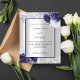 Bitte beachten Sie, dass diese Einladung auf Flyer Papier und sehr dünn ist. Umschläge sind nicht enthalten. Für dickere Einladungen (gleiche Gestaltung) besuchen Sie bitte unseren Shop. Imitate silber aussehender Hintergrund dekoriert mit marineblau und hellblauen Blumen, Blume und Imitate silberne Glitzer, Glitzern. Personalisieren und fügen Sie Ihre Namen und Hochzeitsdetails. Schwarze Buchstaben.