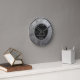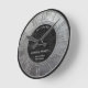 Die Wanduhr ist in silberfarbenem Metalldesign mit schwarzem Imitat aus Leder und römischen Ziffern gehalten. Fügen Sie Ihre eigenen (lustigen oder anderen) Texte und/oder Ihr Logo hinzu.
