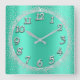 Silver Mint Crystals Confetti Glitzer Grau Zahl Quadratische Wanduhr