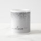 Silber Imitate Foil metallic Sparkle Glitzer gebürstete Metal Monogramm Name Espresso Coffee Cup oder Tasse. Das macht den perfekten 16 Geburtstag, Hochzeit, Brautparty, Jubiläum, Babydusche oder Junggeselinnen-Abschied Geschenk für jemanden, der Lieben glamourösen Luxus und schicke Stile.