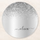 Silver Monogram Glitzer Sparkle Girly Script Runder Pappuntersetzer