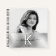 Ein Imitat silber aussehender Hintergrund. Personalisieren und fügen Sie Ihr eigenes Foto, einen Namen, einen Monogramm-Brief und ein Jahr. Der Name ist schwarz geschrieben mit einem großen, modernen, handgeschriebenen Stil-Skript mit Swashes. Der Monogramm-Brief in Weiß. Für Notizen, als Tagebuch, Journalismus, Schule, Arbeit oder Organisation Ihres Privat-/Familienlebens. Um die Swashes behalten, löschen Sie nur den Beispielnamen, verließ die Leerzeichen oder Emoji's vor und nach dem Namen