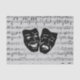 Künstlerisches Talent kommt in vielen Formen und wenn sie sich vereinen, ist es spektakulär. Die griechischen Theatermasken der Komödie und Tragödie liegen auf einem Notenblatt