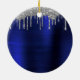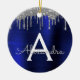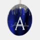 Silver Navy Blue Glitzer Brushed Metal Monogram Keramik Ornament